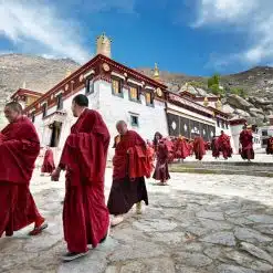 Le matin, visite du Norbulingka, ancien palais d’été du Dalaï Lama situé à Lhassa, au Tibet. Ce magnifique complexe, construit au XVIIIe siècle, est entouré de superbes jardins et constitue un exemple remarquable de l’architecture et de l’art tibétains. Pendant la visite, vous découvrirez les salles décorées de fresques et de thangkas, ainsi que les statues et objets précieux utilisés par le Dalaï Lama dans sa vie quotidienne. L’après-midi, visite de l’Université monastique de Sera. Bien que très endommagée lors de l’invasion chinoise du Tibet, puis sous la Révolution Culturelle, elle a été restaurée et n’a pas perdu sa fonction d’université monastique. Elle accueille encore aujourd’hui un grand nombre de moines et de