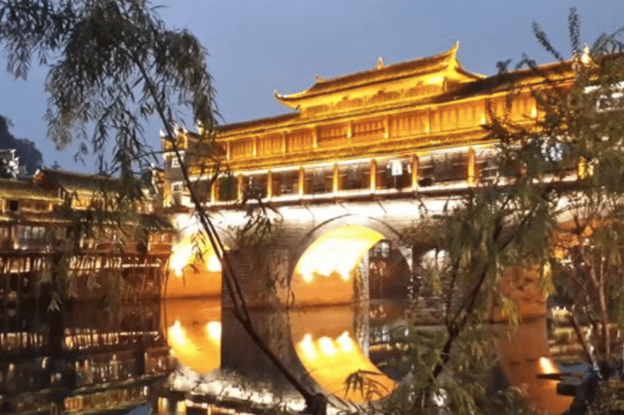 Ce matin, départ vers Hongshilin, le géoparc national des Roches rouges qui possède de nombreuses formations rocheuses en forme de vagues dont les couleurs changent avec le temps, du noir au rouge. Continuation ensuite vers la vieille ville de Fenghuang, centre de la minorité ethnique Miao. Le soir, à Fenghuang, dîner dans l’un des restaurants sur pilotis pittoresques surplombant la rivière Tuo éclairée. Nuit au Riverside Homestay Jiāng Jing Hotel situé sur le bord de la rivière.
